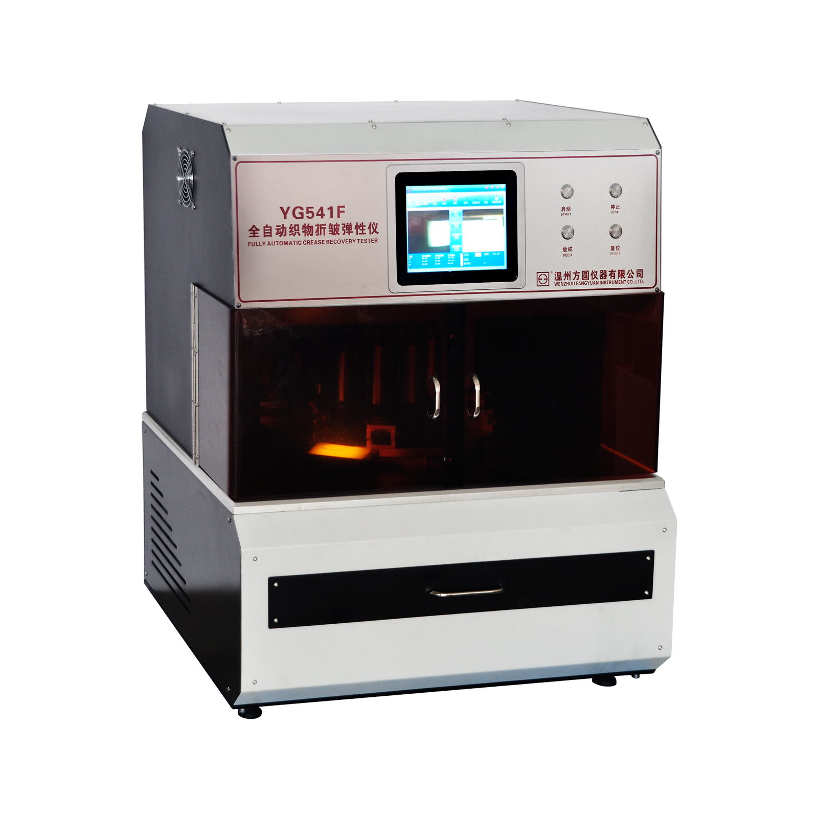 YG541F全自動(dòng)織物折皺彈性?xún)x GB/T3819、ISO 2313等標(biāo)準(zhǔn)。